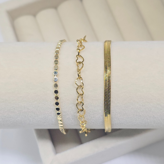 Gold Heart Bracelet Set